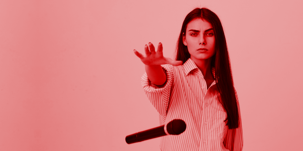 Look at the difference between these two images. Who do you think looks like a better speaker? Imagine yourself as the woman on the right – totally confident and in control. Wouldn’t that feel great? Now try to see yourself that way.